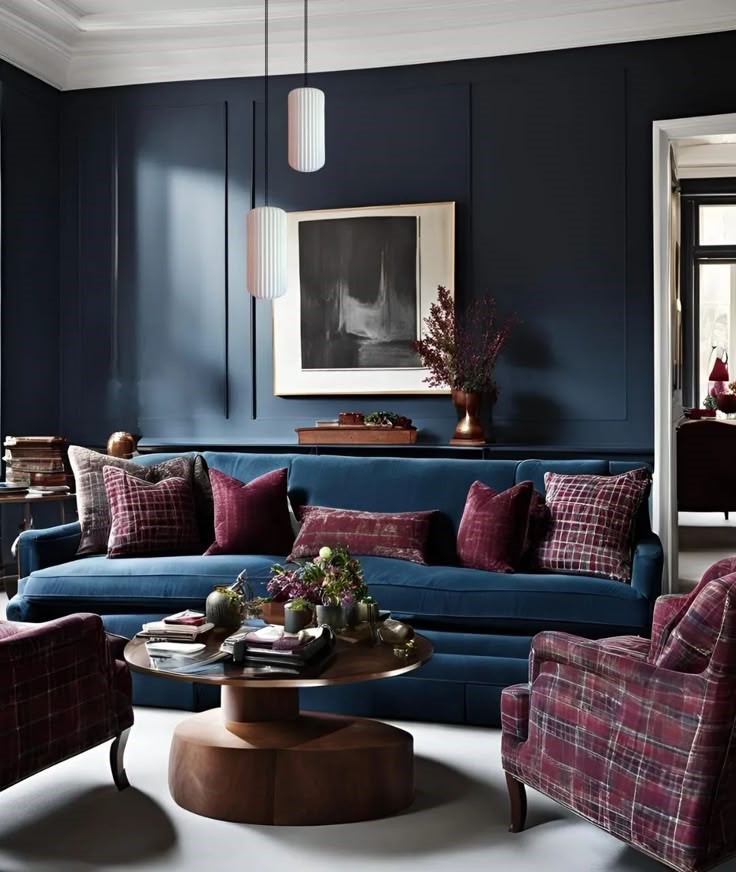 Синий цвет хорошо сочетается с другими глубокими оттенками, такими как бордовый и изумрудный, а также с нейтральными цветами — белым, серым и бежевым. Это позволяет создавать многослойные и глубокие цветовые палитры, которые сделают ваш интерьер уникальным. Выбор глубокого синего цвета помогает создать расслабляющую атмосферу, что особенно актуально в 2025 году, когда акцент на психическое здоровье и эмоциональное благополучие станет важным.